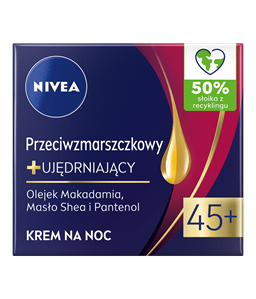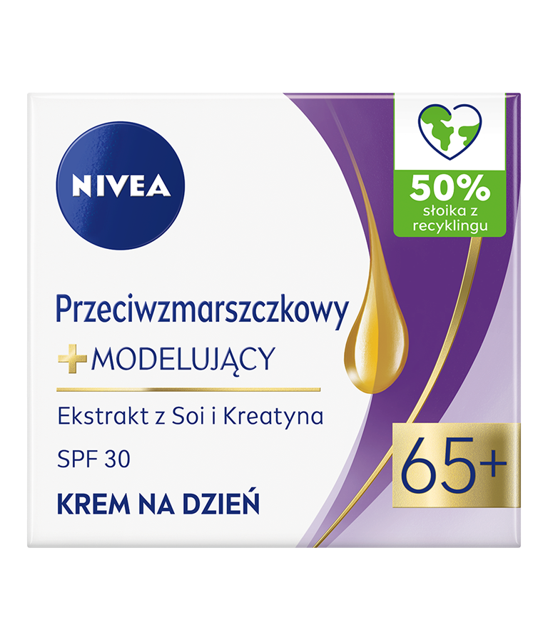 Aqua, Glycerin, Homosalate, Butyl Methoxydibenzoylmethane, Ethylhexyl Salicylate, Octocrylene, Cetearyl Alcohol, Methylpropanediol, Tapioca Starch, Ethylhexyl Stearate, Phenylbenzimidazole Sulfonic Acid, Glycine Soja Germ Extract, Tocopheryl Acetate, Sodium Cetearyl Sulfate, Dimethicone, 1,2-Hexanediol, Xanthan Gum, Ammonium Acryloyldimethyltaurate/VP Copolymer, Acrylates/C10-30 Alkyl Acrylate Crosspolymer, Trisodium EDTA, Sodium Hydroxide, Phenoxyethanol, Linalool, Citronellol, Alpha-Isomethyl Ionone, Benzyl Alcohol, Geraniol, Limonene, Coumarin, ParfumNÄOKONTUURE TAASTAV KORTSUDEVASTANE PÄEVAKREEM 65+ Regulaarsel kasutamisel aitab taastada näokontuure. Vähendab nähtavalt sügavaid kortse ja ennetab vanaduslaikude teket. Tänu UV-kaitsele aitab ennetada rakukahjustusi.