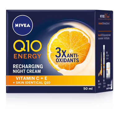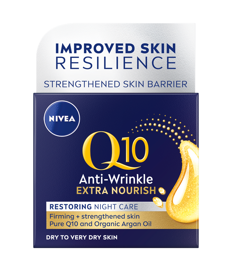 NIVEA Q10 ANTI-WRINKLE EXTRA NOURISH kortsudevastane taastav öökreem kahekordse puhta Q10 toimega ja 100% orgaanilise argaaniaõliga kuivale ja väga kuivale nahale