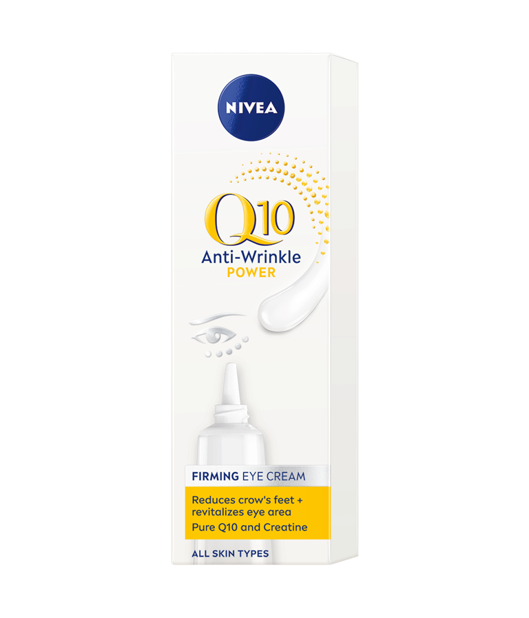 NIVEA Q10 ANTI-WRINKLE POWER kortsudevastane pinguldav silmakreem kahekordse puhta Q10 toime ja kreatiiniga.
